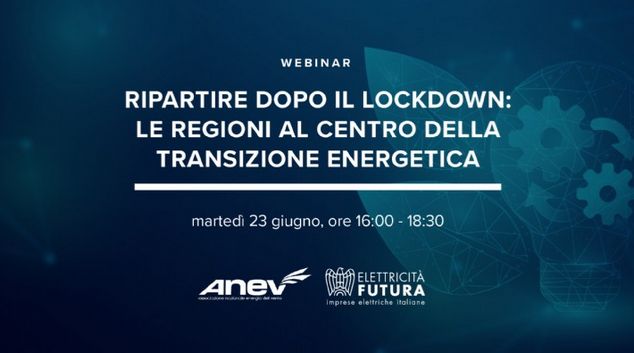 Energia Oltre ha trasmesso, in diretta, lo scorso 23 giugno, il webinar “Ripartire dopo il lockdown: le Regioni al centro della transizione energetica”, organizzato da Anev ed Elettricità Futura. L’evento aperto a tutti si è tenuto in videoconferenza sulla piattaforma Zoom.